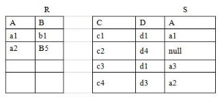 4、已知关系R和S如下,属性A为R的主键、S的外键,属性C为S的主键,则S中违反参照完整性约束的元组是【 c 】。