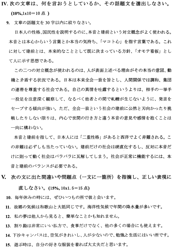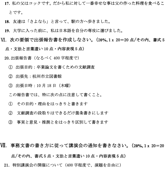全国2021年10月高等教育自学考试日语写作试题