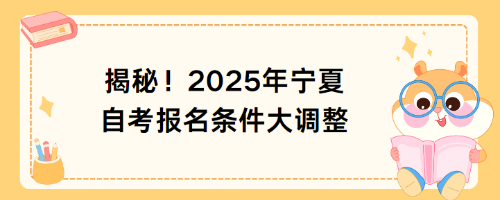 【导读】揭秘!2025年宁夏自考报名条件大调整,那么下面宁夏自考网小编带大家一起了解一下。