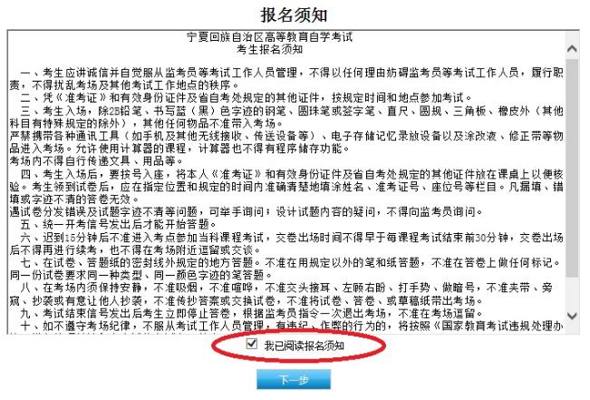 3、仔细阅读考生报名须知。阅读结束以后勾选“我已阅读报名须知”,进入报名报考流程页面。